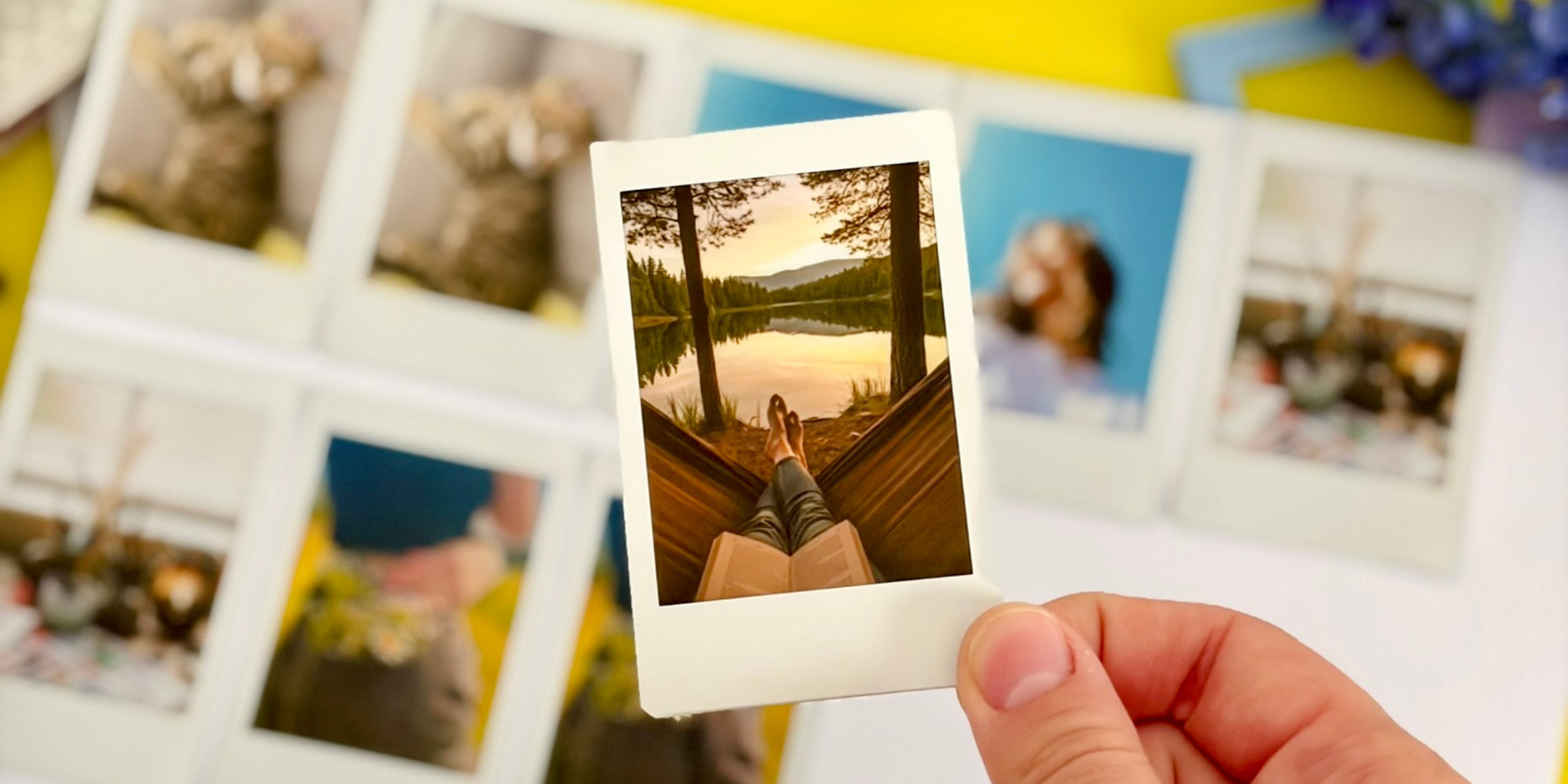 TIP! Podklad můžete použít jednobarevný či neutrální a vybrat si z nabídky barevných snímků Instax (velikost snímků je na vašich preferencích).
