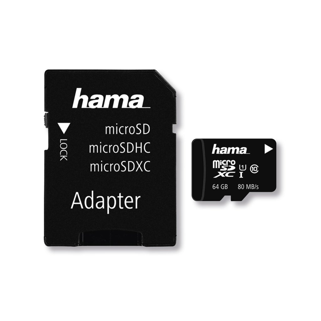 Hama microSDXC 64 GB Class 10 UHS-I 80 MB/s + SD adaptér | Rychlá paměťová karta