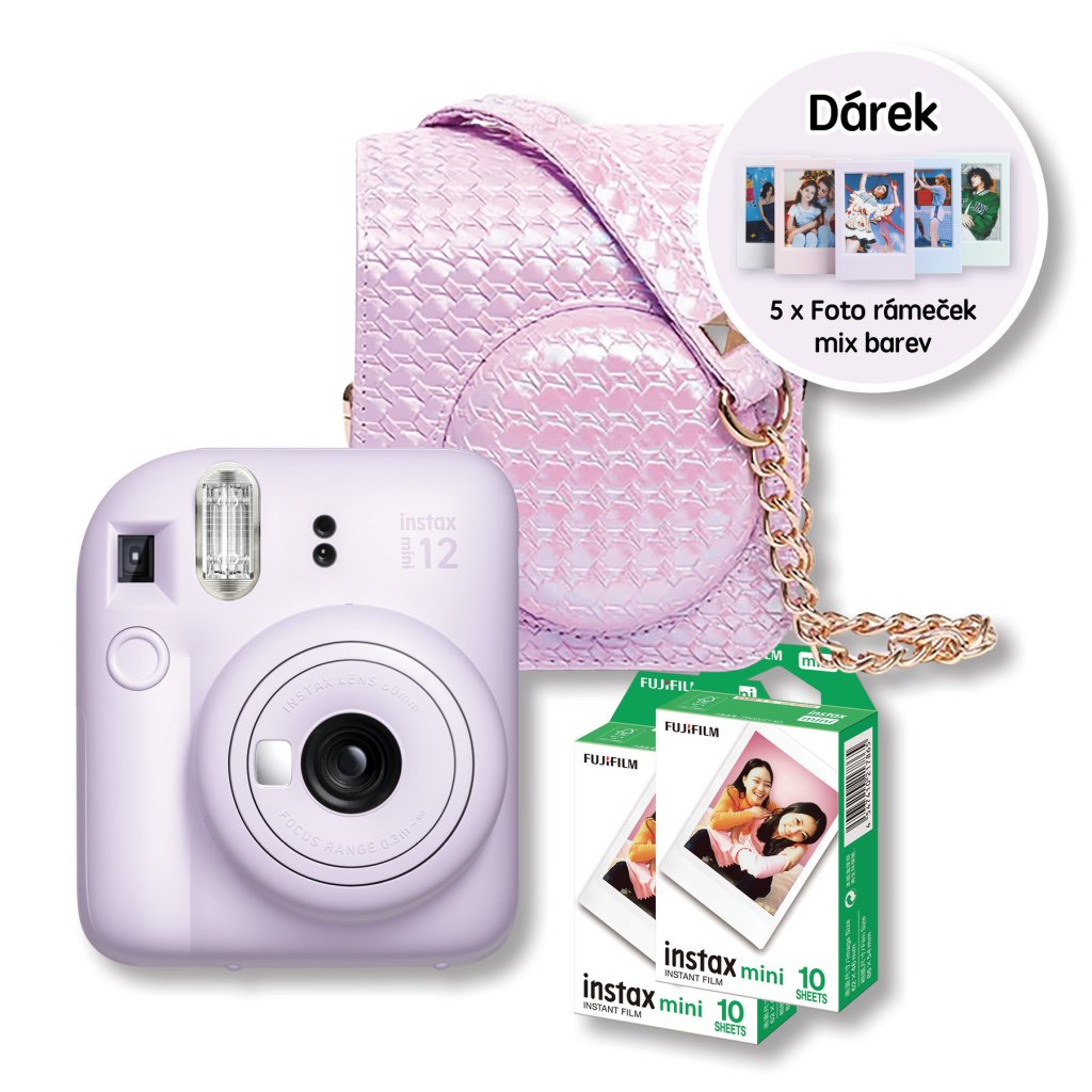 Instax Mini 12 Set Iridescent 3v1 Lila Limitovaná Edice + 5ks Mini Photo Frame Pastel Mix barev