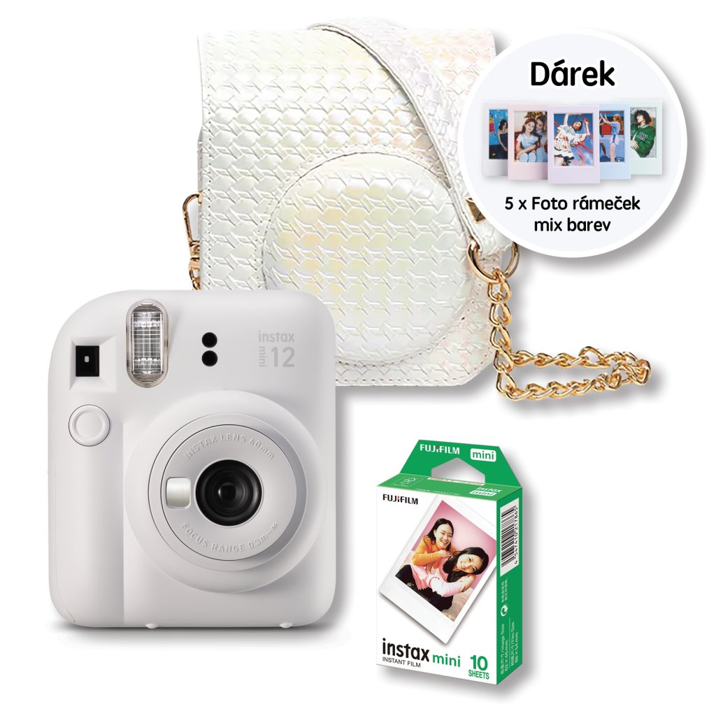 Instax Mini 12 Set Iridescent 3v1 White Limitovaná Edice + 5ks Mini Photo Frame Pastel Mix barev