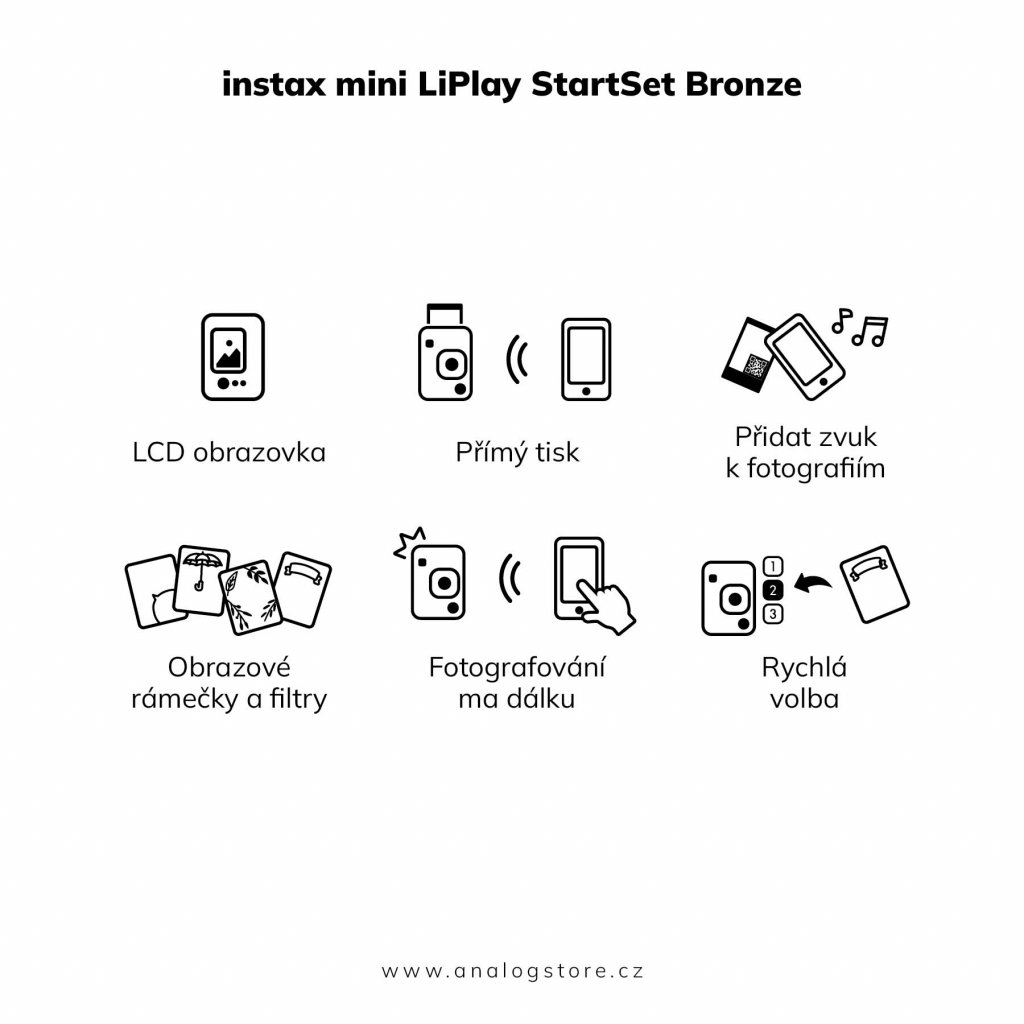 instax mini LiPlay StartSet Deep Bronze + 5 ks Mini Album Weave (mix barev)