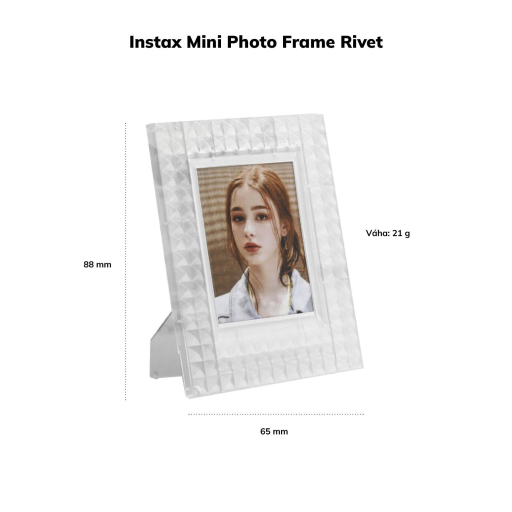 Instax Mini Photo Frame Rivet, plastový rámeček se stojánkem (v zadní části). Může stát na výšku nebo na šířku. Určen pro snímky typu Instax Mini. Můžete použít naše barevné fotorámečky pro zobrazení Vašich fotografií na psacím stole. Můžete si vybrat různé barvy, které chcete použít podle svého přání. Vhodné pro použít také na párty nebo rodinné oslavy, setkání přátel. Velmi dekorativní rámeček na fotografie.