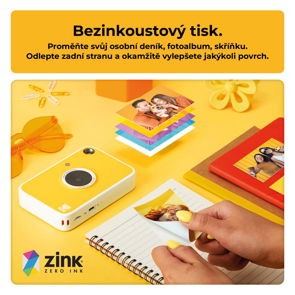 Kodak Printomatic+ je moderní digitální instantní fotoaparát, který přináší zábavu a kreativitu do každého okamžiku. Tento kompaktní a stylový fotoaparát je navržen tak, aby každý snímek byl okamžitě k dispozici jako fyzická fotografie. S 10 MP snímačem pořizuje ostré a barevné fotografie plné detailů, které si můžete hned vytisknout na ZINK papír o velikosti 2×3 palce (cca 5×7,5 cm). Technologie ZINK (Zero Ink) umožňuje tisk bez inkoustu, toneru nebo kazet, což zajišťuje rychlé, jednoduché a ekologické vytváření výtisků.