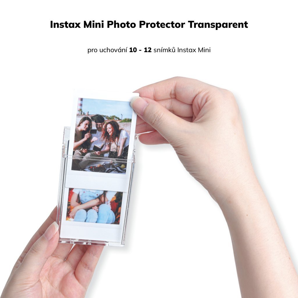 Tento box je perfektním společníkem na výlety, cestování či akce s přáteli. Zapomeňte na pomačkané, ohnuté nebo znečištěné fotky v kapse nebo batohu. Krabička pojme pohodlně 10 až 12 snímků Instax Mini, takže můžete mít celý film stále pohromadě. Pevný průhledný plast zajišťuje vynikající ochranu proti poškrábání, vlhkosti a špíně.
